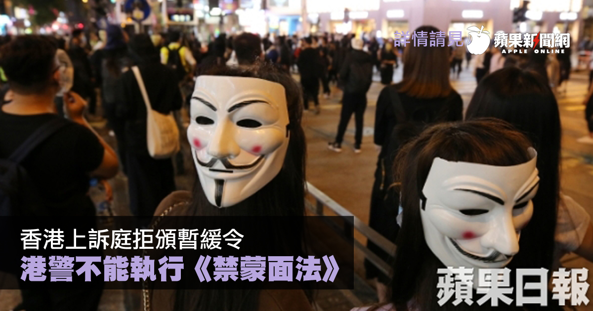 香港上訴庭拒頒暫緩令,港警不能執行《禁蒙面法》#蘋果國際 #香港 #禁蒙面法 #蘋果新聞網 #台灣 #Taiwan #獨家→→