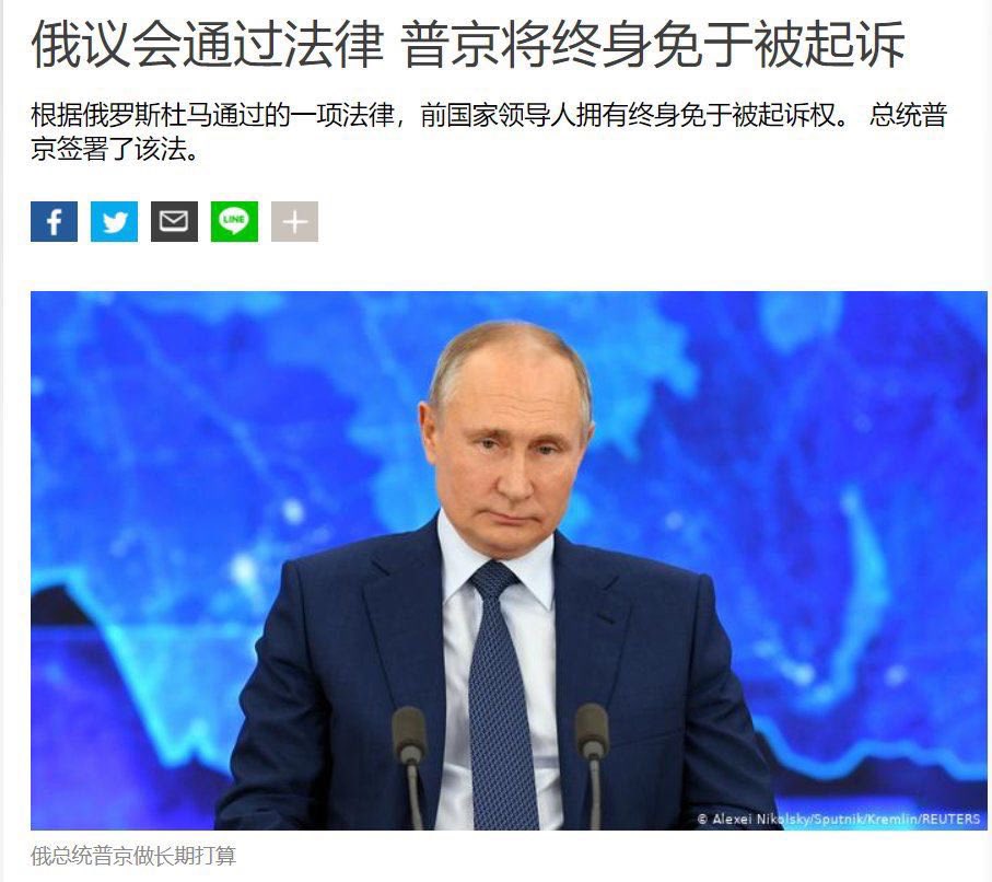 如果俄罗斯体制不变,这种免死金牌未必有用,你可以立,别人就可以废,除非普京下台前让俄罗斯成为英美那样尊重法律传统的正常国家,可是,普京敢这么做吗?时至今日,就算他想这么做,就一定能成功吗?