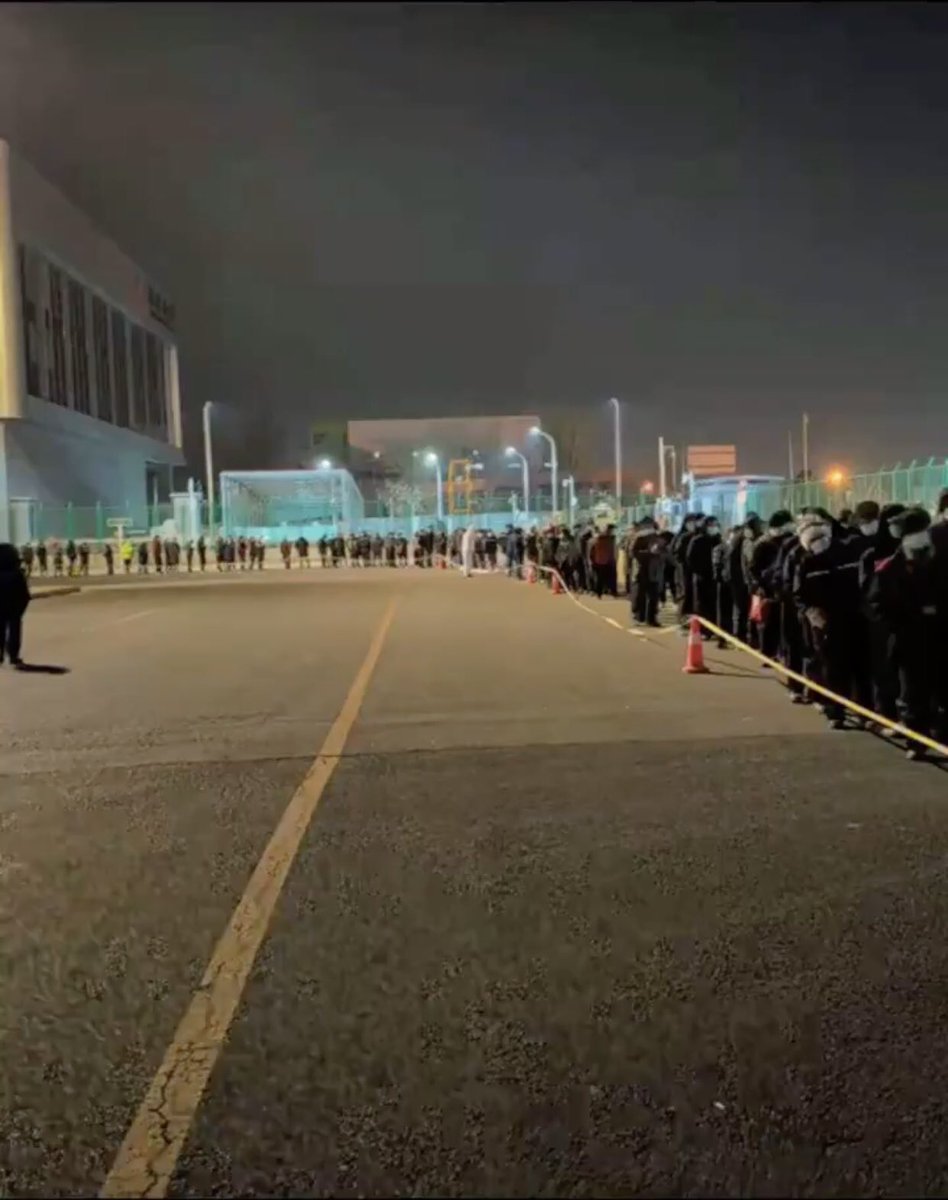 北京顺义区天竺综合保税区封闭,员工排长队做核酸检测,顺义率先进入战时状态。