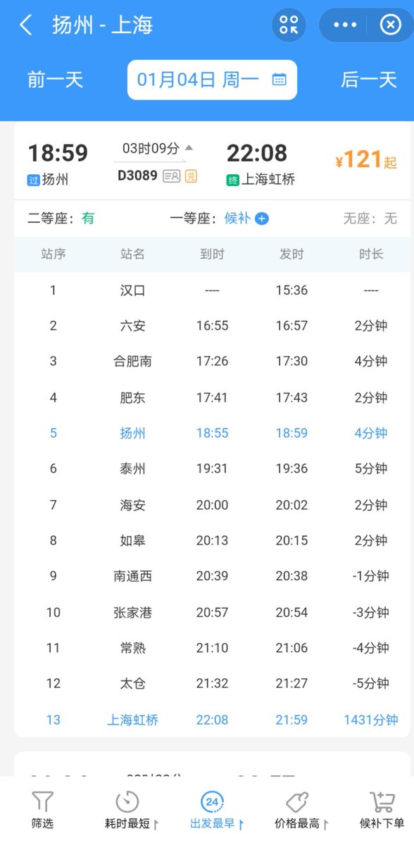 途径扬州,所以时间开始减少了