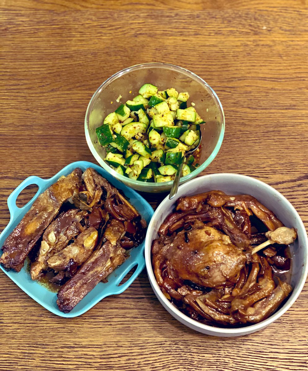 晚餐:卤鸭腿鸭掌排骨配大馒头。吃!