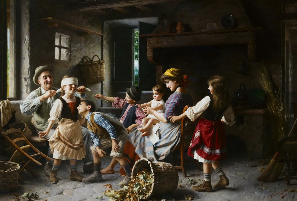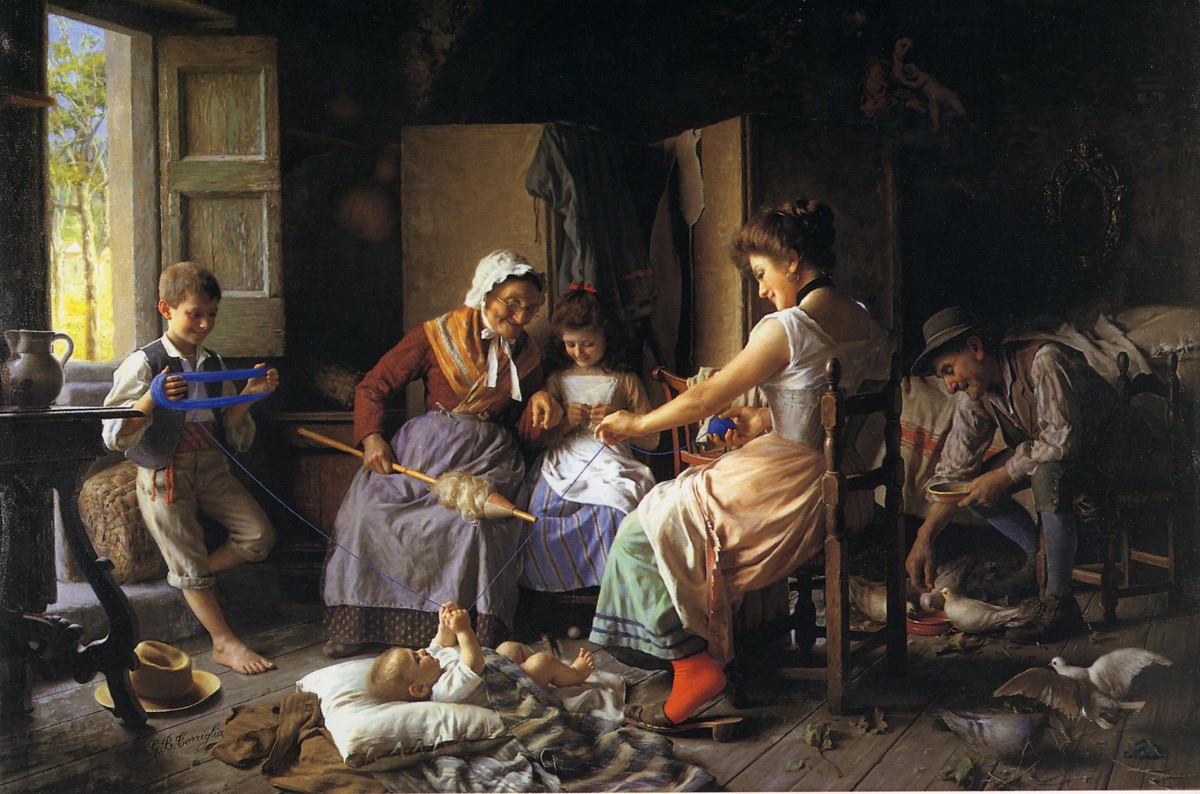 画的作者:意大利画家 T. G. Battista 1857 ~ 1937画中情景很令人动情房屋简陋却温馨无比有家有情有爱就有快乐 就有幸福