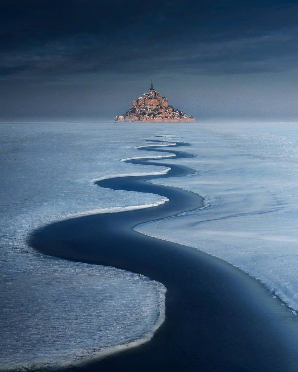 大雪过后的法国,圣米歇尔山周围被一片白色覆盖,让这座神秘孤寂的小岛越发仙气逼人。