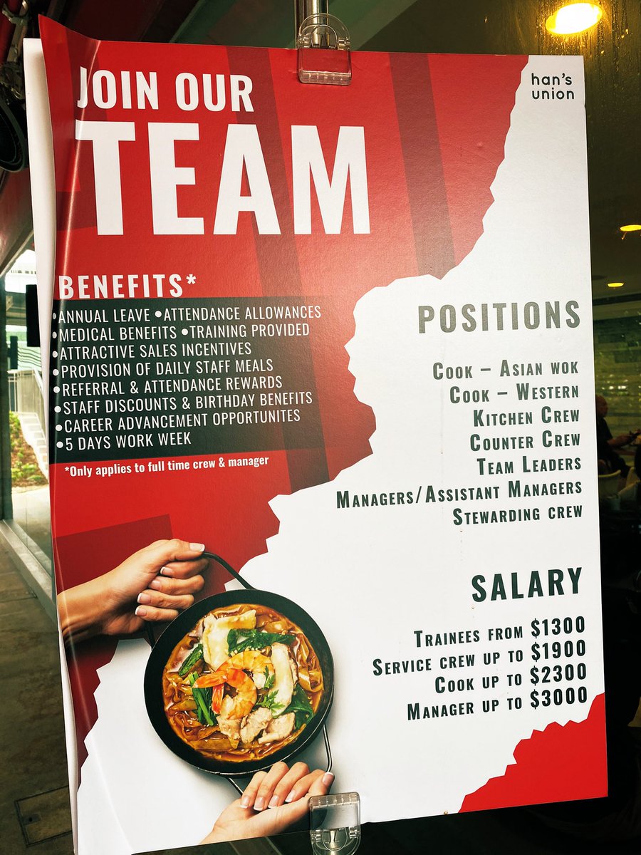 新加坡餐饮服务业薪水概况。