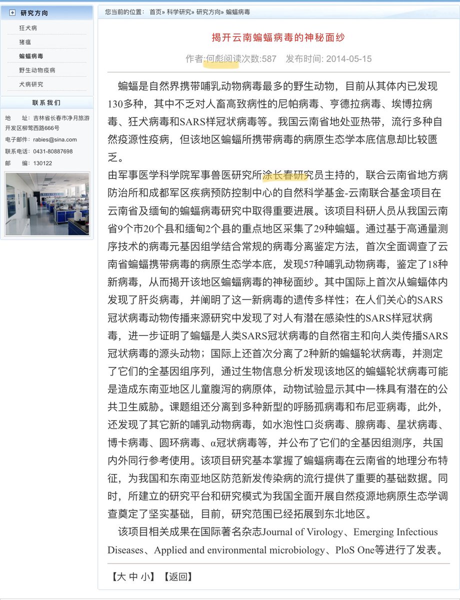 何彪,军事科学院军事医学研究院军事兽医研究所研究员长春市野生动物疫病研究中心副研究员第四届“井冈新秀”课题组:涂长春(图)