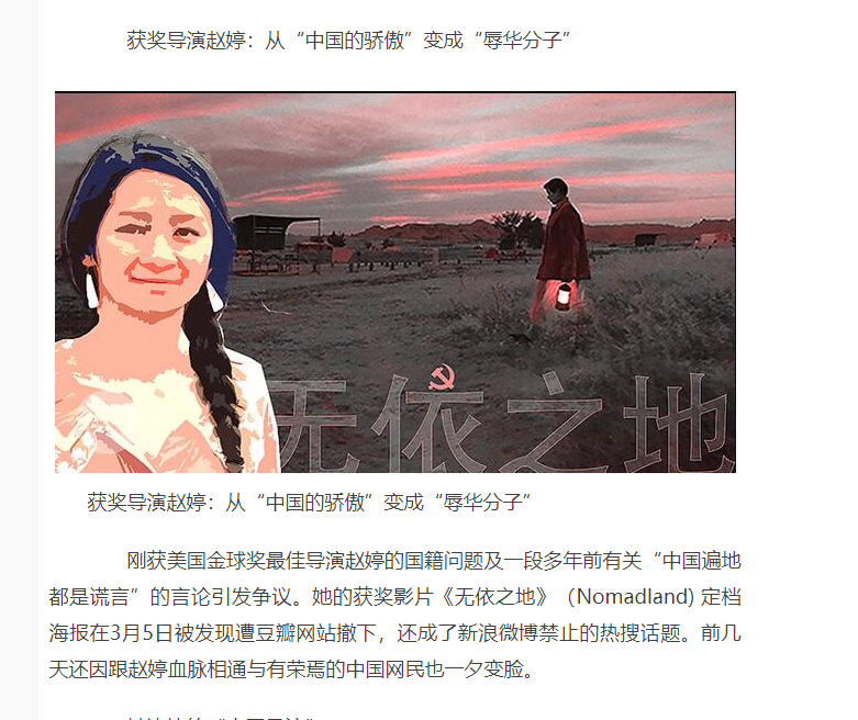 这是在墙内被禁的原因?: 赵婷2013年在美国电影杂志《电影制作人》(Filmmaker)上曾说,“我在中国长大,那是个遍地谎言的国家,我感觉好像永远走不出去。有很多我在小时候吸收的资讯,最后发现都是假的,从此养成我叛逆的性格。”