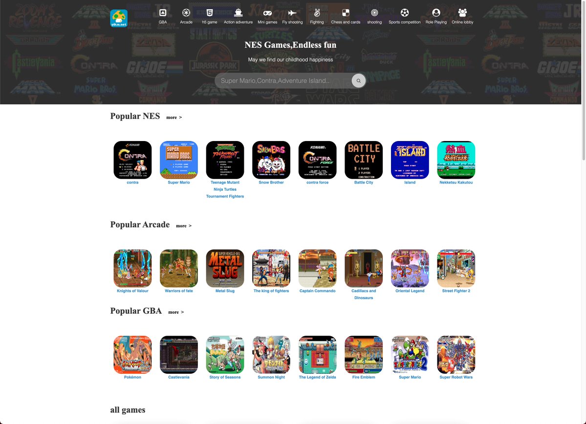 小时候玩过小霸王机吗现在也可以玩这网站收录大部分游戏魂斗罗,超级玛丽,合金弹头,拳皇等等还可以玩2P