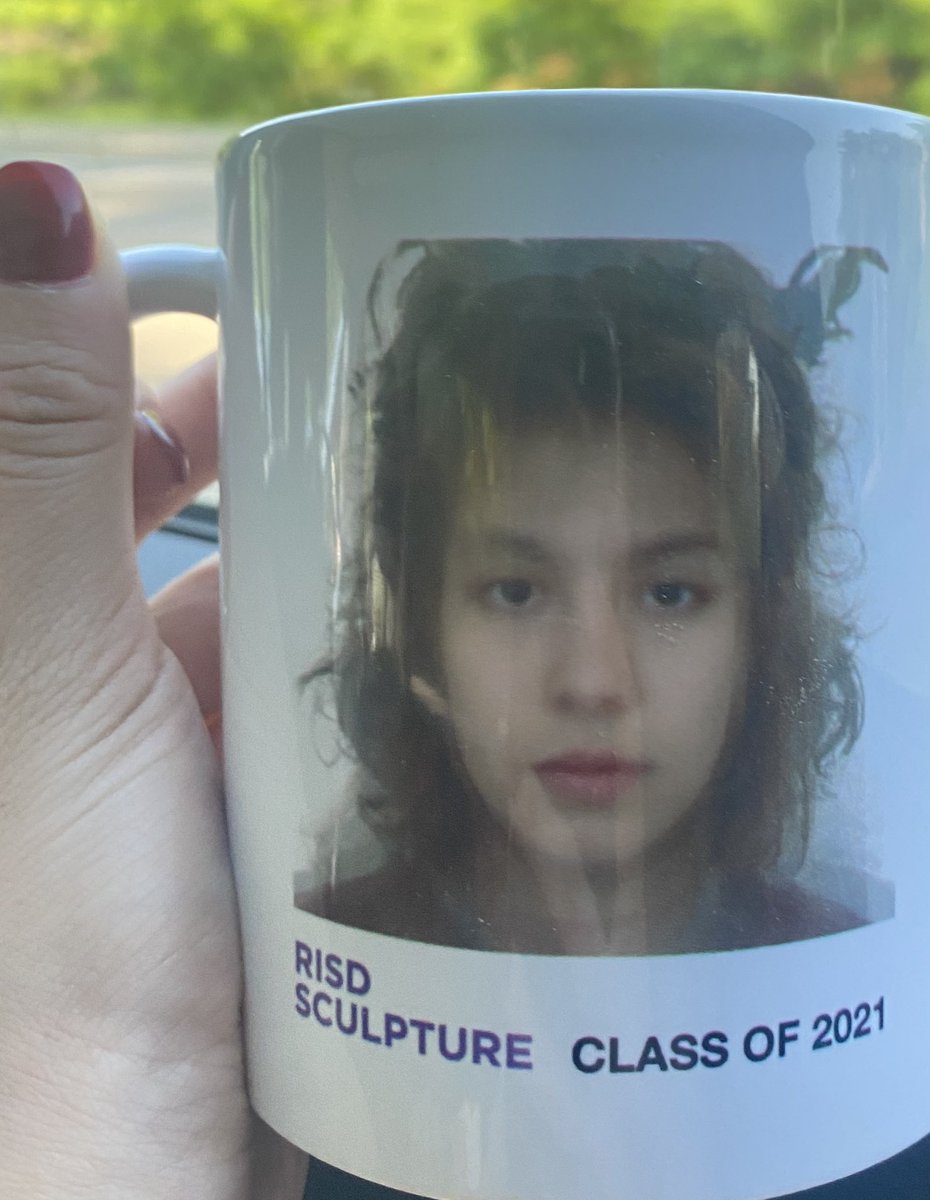 这个印制在杯子上的人物,是由十几个真实人物的照片合在一起,再由软件生成的一个虚幻肖像。这十几个人,是闺女的全班同学。她在罗德岛设计学院雕塑系就读,这个杯子是毕业纪念物。