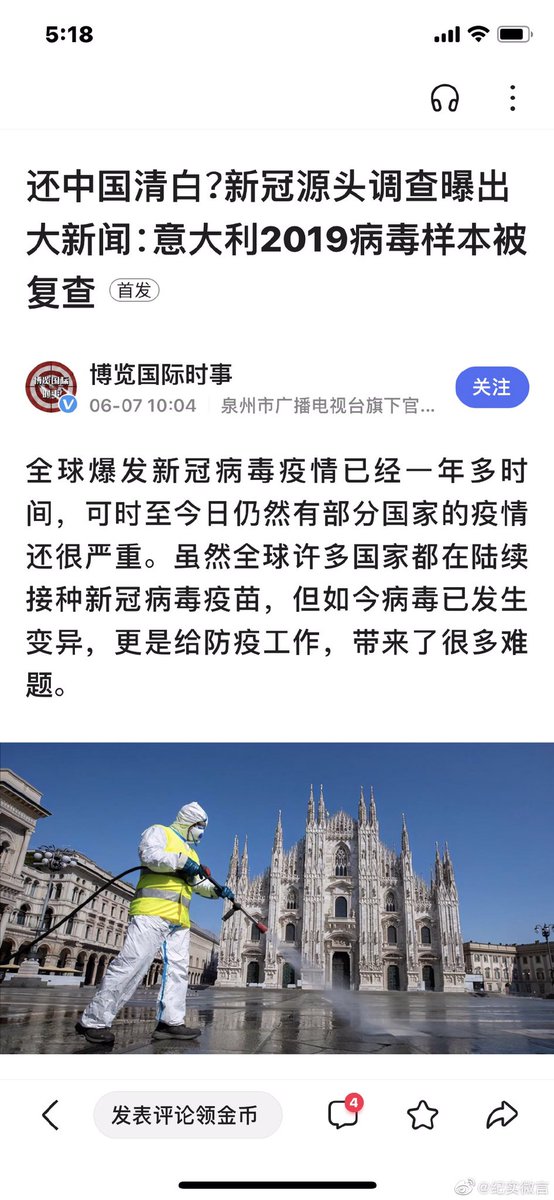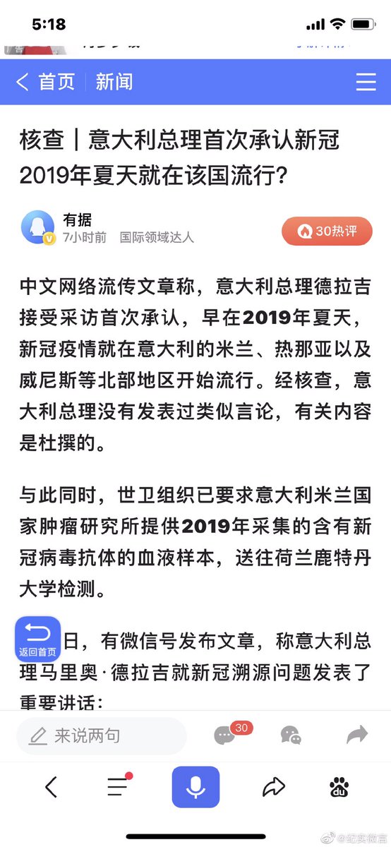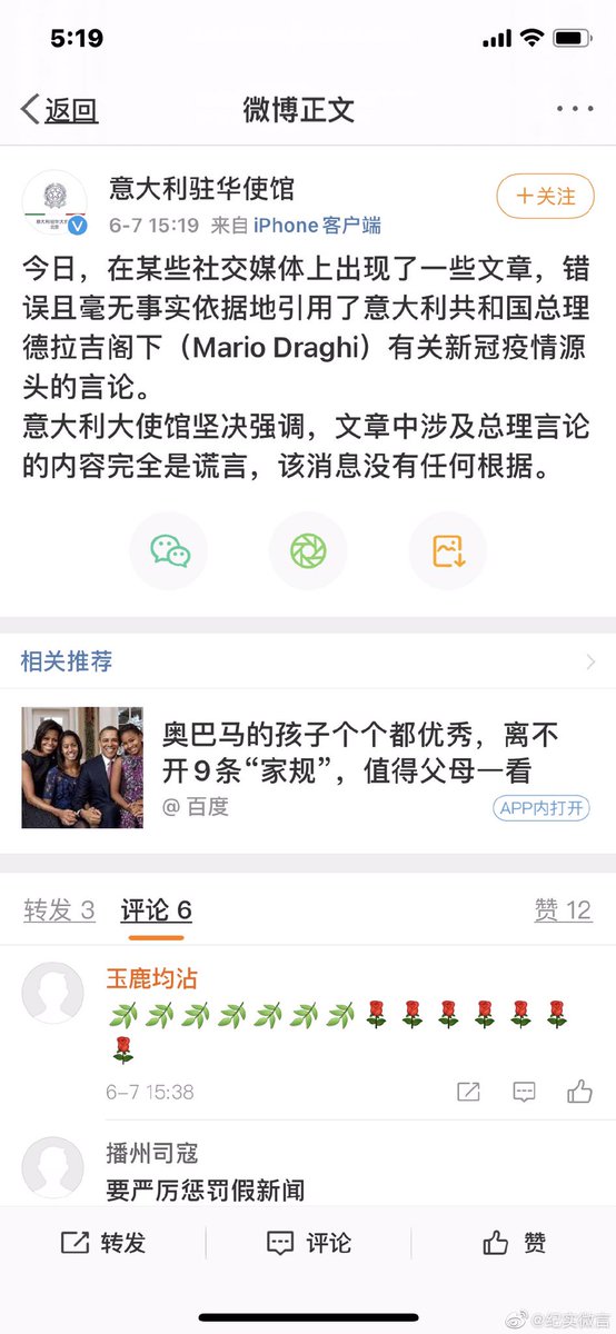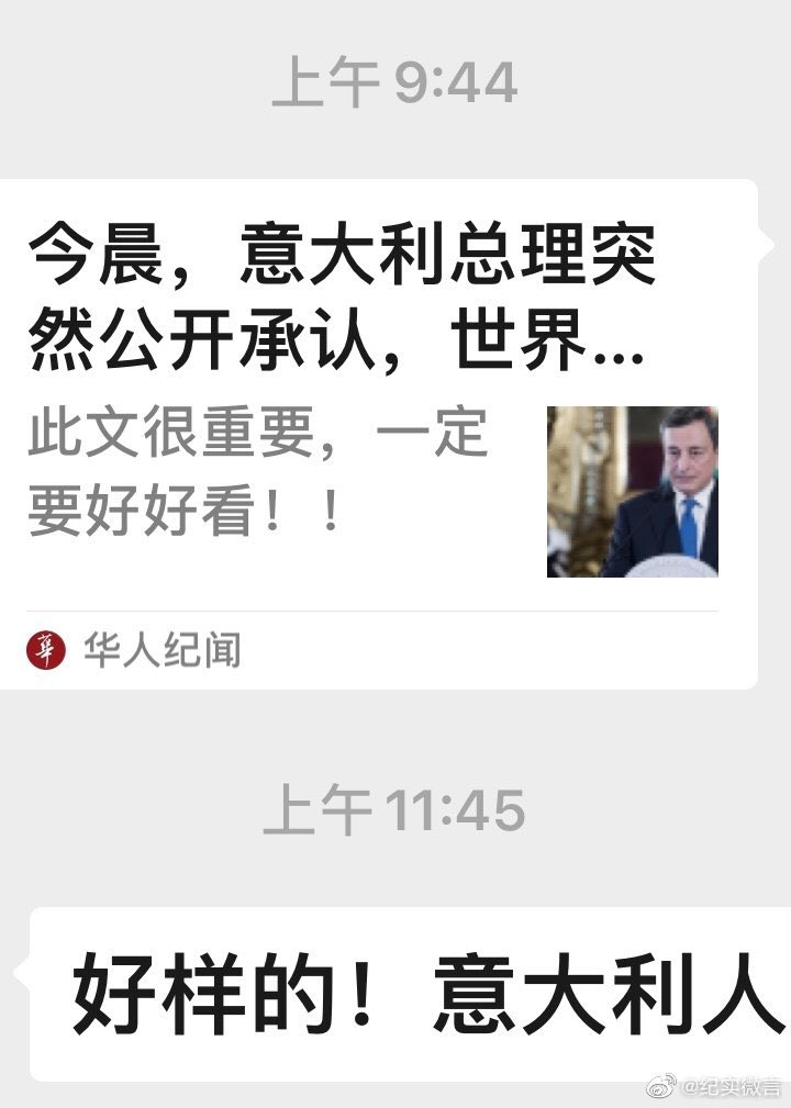 你国为了甩掉疫情发源地的锅已经疯了,造谣到意大利。