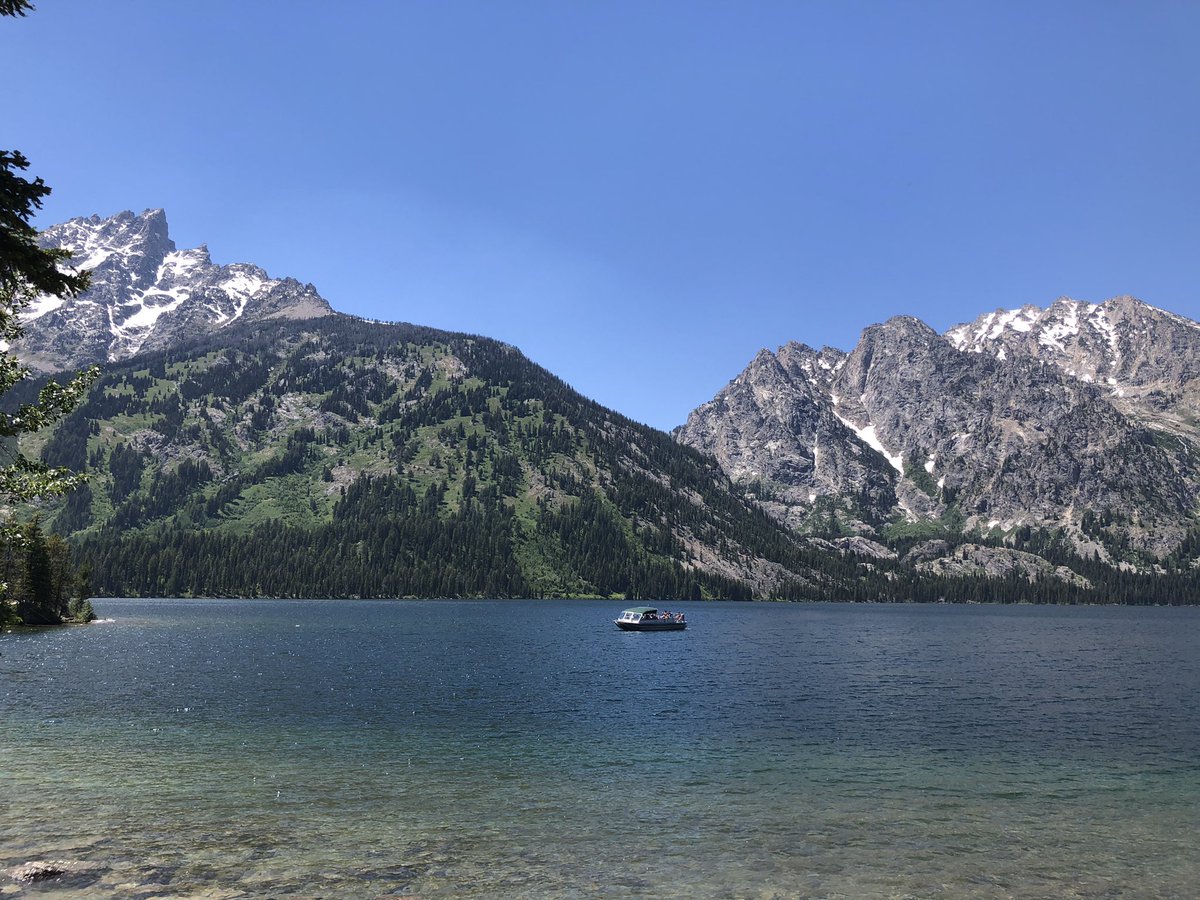 出了黄石南门就是Grand Teton 大提顿国家公园,真美。 摆一个很女儿一样的姿势,没她拍得好。