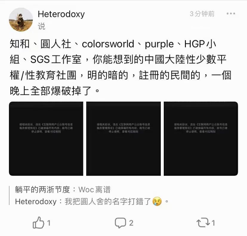 各大高校LGBT公众号炸号?我还记得4月8日时出现了一则“温州少年注射药物变性”报道,那时候我就说“开始了”是一场“阳刚之气整风运动”开始了