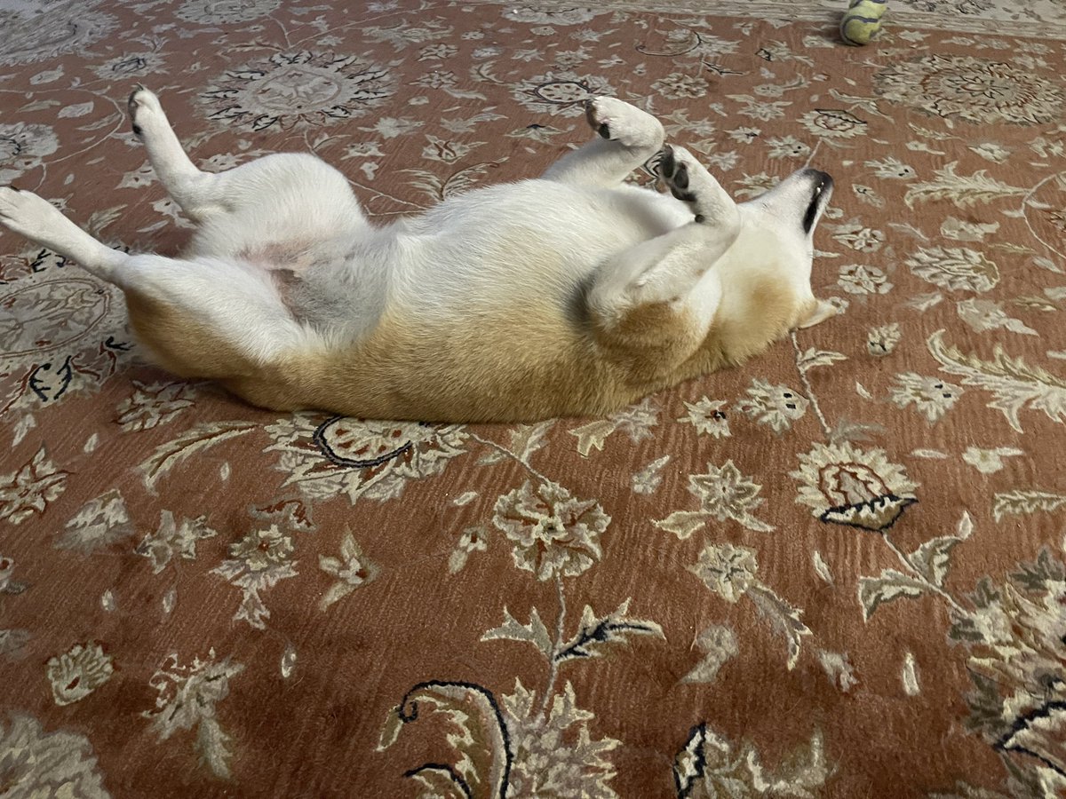 今天驾车行驶了五百多英里,除了在加油站散会步,小黄今天一直呆在车里,一丁点儿怨恨的眼神都没有,真感动!当然,为了它不晕车,我使出浑身解数平稳驾驶。这不,刚进门,就以这种姿态尽情享受家的温暖……