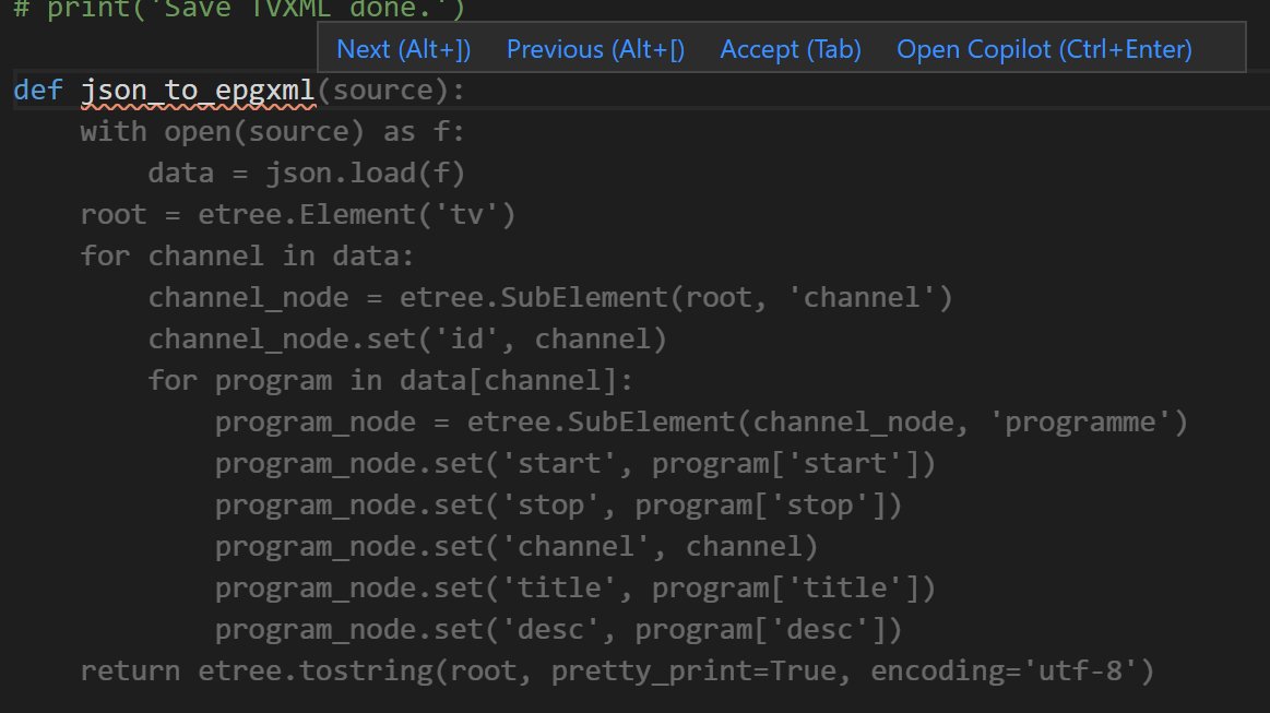 第一次尝试Copilot,吓一跳,真的好好用……只要起一个有意义的函数名字,剩下的……你只需稍作编辑……你是一台成熟的电脑了,可以自己给自己编程了。