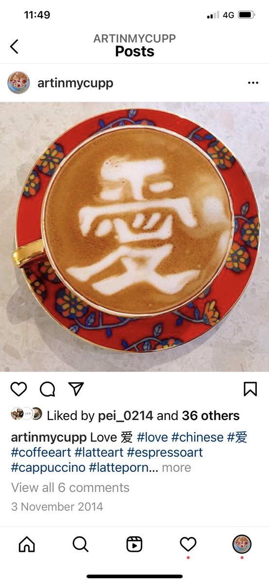 我翻翻instgram。给自己吓到了。往下拉5分钟。密密麻麻每天一杯咖啡。最早2014年。我可以连皮厚厚滴说你们现在看到有人拿牙签在画咖啡应该都是跟我学的。