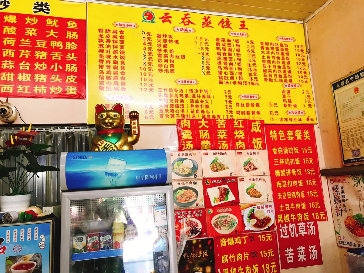 朋友们好!我的早餐在泉州永春。沙县小吃。扁食拌面9元,我加了辣椒和醋。蒸饺6元,好像是韭菜肉馅的,老板娘给我一碟花生酱蘸。冰的绿豆汤6元,糖放的可能到极限了,很甜冰冰的。今天最高37度我走了3公里浑身是汗,还是穿的少凉快。