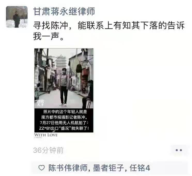 但是后来有人说从地铁口出来就失联了, 这小伙子原来是南方都市报的青年记者陈冲。