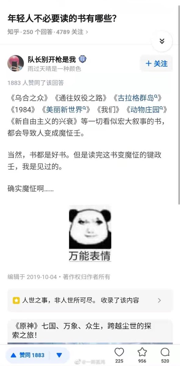 这是一个利用小粉红好奇心,诱导他们读书,进行反洗脑的高级操作