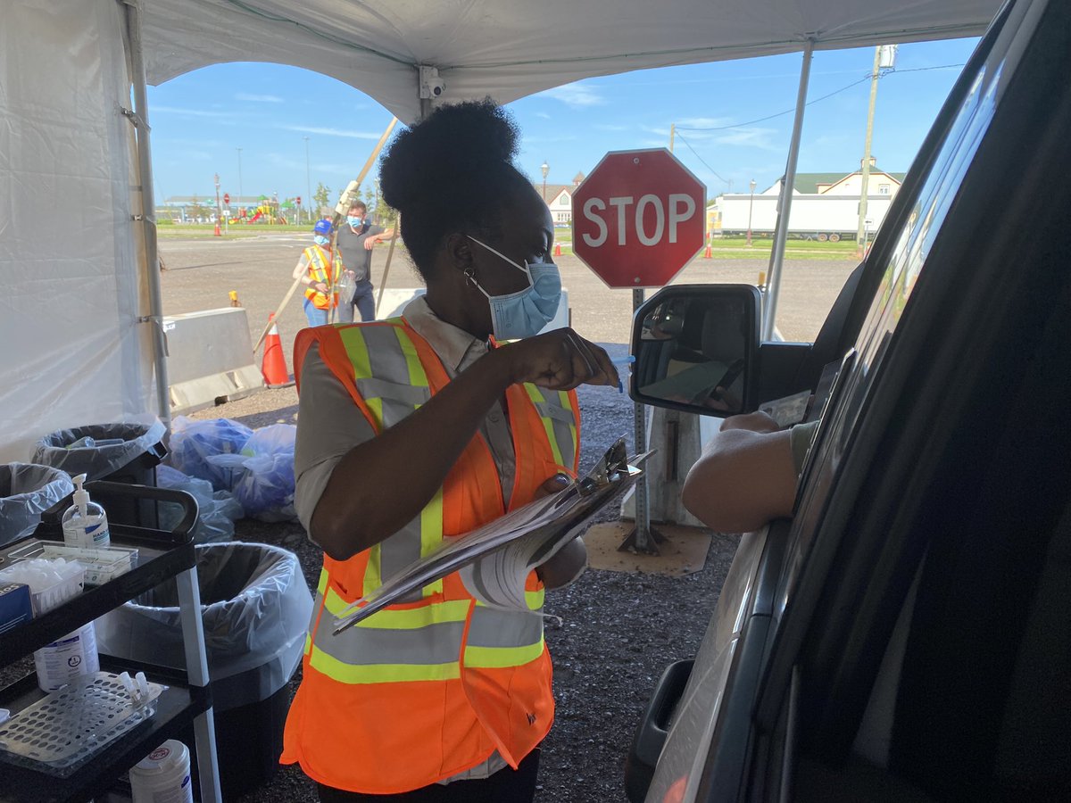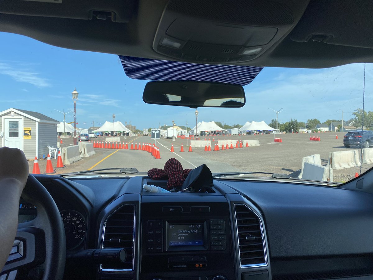 进入PEI, 每辆车要检疫两人,疫情以来第一次捅鼻子验核算。无需等结果,15分钟放行