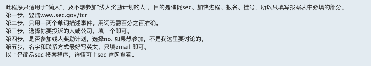最近接到多人询问关于怎么申报 SEC 报案有个图也是投资的老椅子推荐给我看请大家自行研究 展开讨论 采取措施 有效行动 依法保护自己的投资款(我不是律师 没有法律建议)