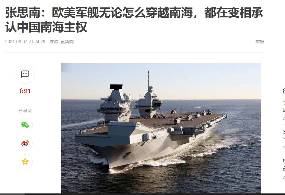 记者:法国、澳大利亚、日本、印度也加大了在南海附近水域的部署,你对此作何评价?张思南:这是变相承认中国南海主权张3在王2麻子家门口建房子,王2麻子对外说,这是变相承认门口是我家的