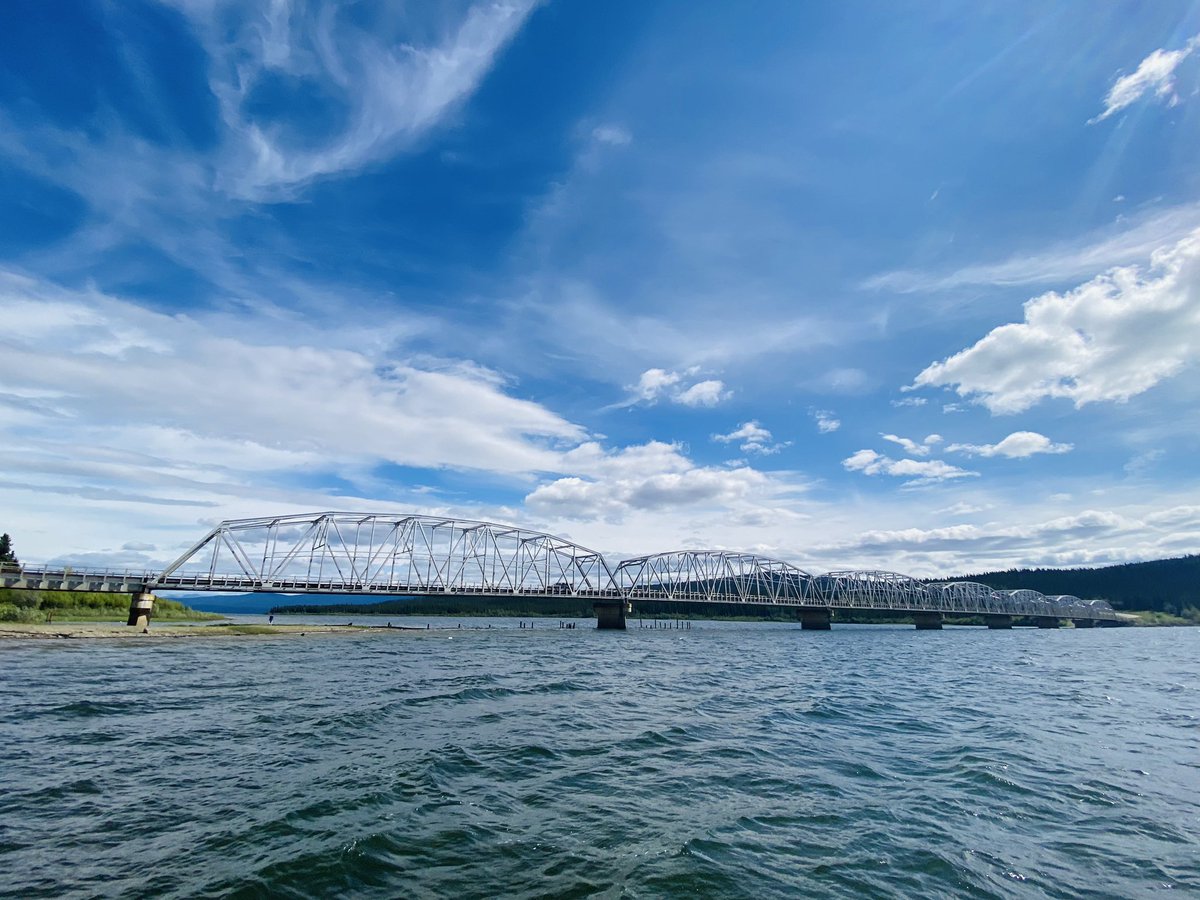 育空Nisutlin Bay Bridge 大铁桥,阳光灿烂、微风拂面,停车赏景 稍事休息。