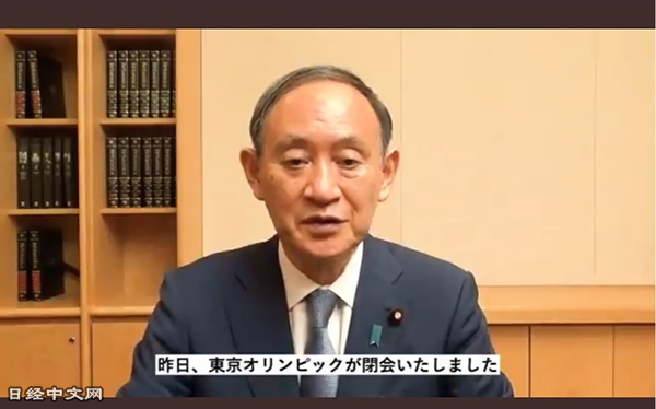 【菅义伟感谢国民对奥运的理解和配合】菅义伟发表了视频致辞,评价称“尽到了主办国的责任,成功将接力棒交给巴黎奥运会”……