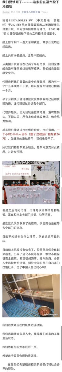 大陆防疫,饿死海员,一个月不让上岸,不卖食品。哦,载的是玉米,以后顿顿吃玉米?