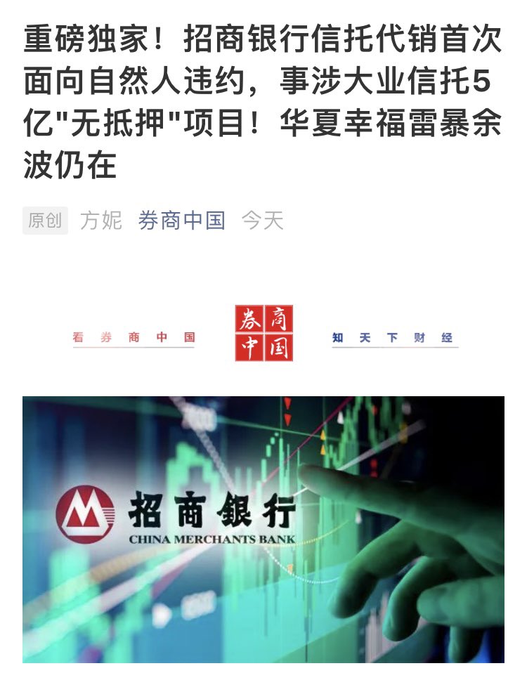 招商银行踩雷华夏幸福“无抵押”项目!ps:靓丽的年中报恐怕不能拉升股价了!