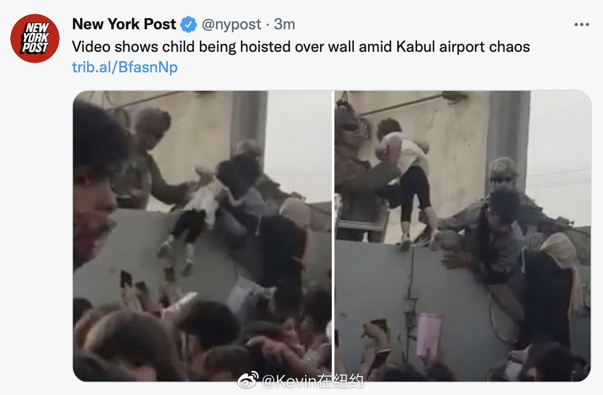 Kevin在纽约纽约邮报刚刚:喀布尔机场骚乱事件中,挤不上飞机的绝望父母把孩子高高举起递给执勤的美军士兵。