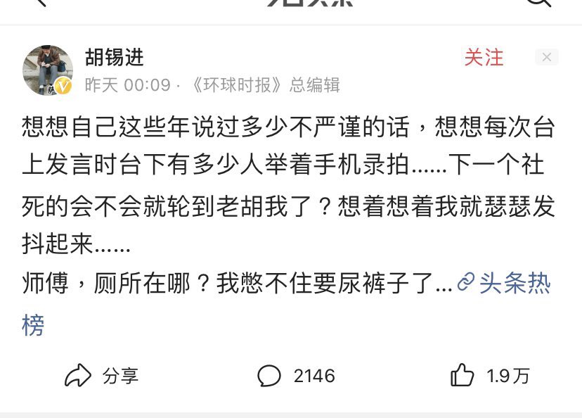 老胡这段话狗哥琢磨了整两天,初步判断是他的前列腺出问题了。
