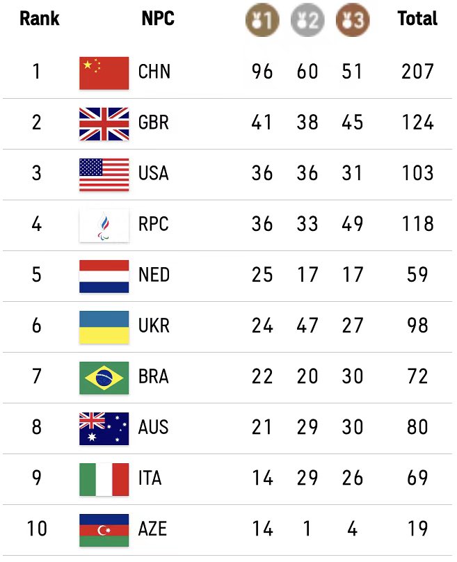 东京残奥会金牌榜奖牌榜双第一!中国队完美收官!美国这是不重视残疾人运动会吗?