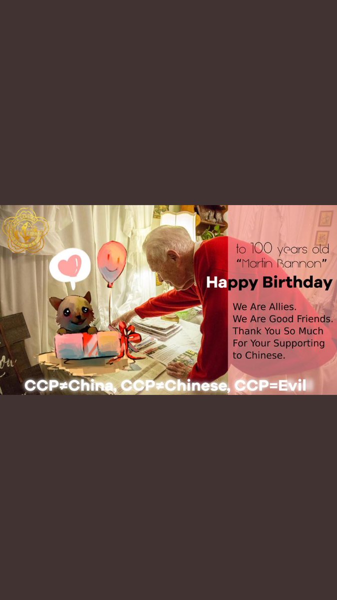 预祝我们最好的盟友班农先生的父亲百岁生日快乐,健康幸福快乐