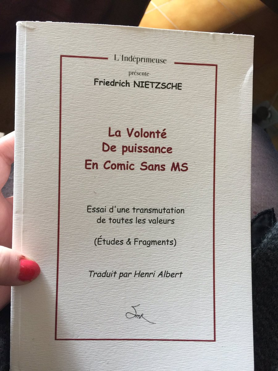 法国曾经有家出版社用comic sans字体印刷了尼采的《权力意志》。我不知道读者要用什么心情看这本书。