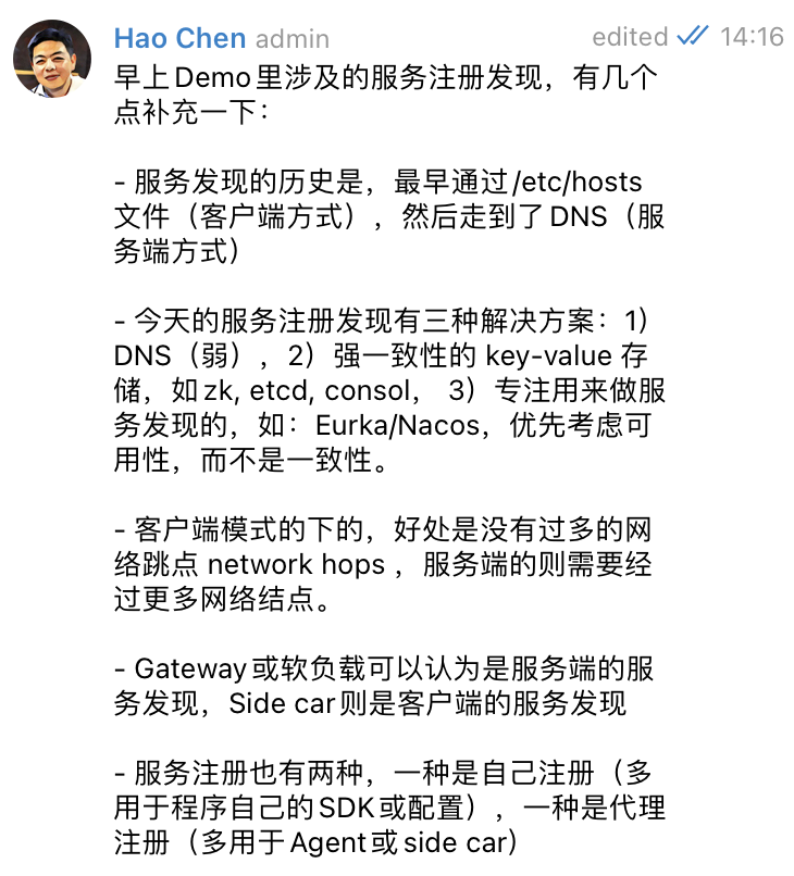 在公司群里的一个“微分享”,关于“服务发现”的一些小常识。大家可以补充……
