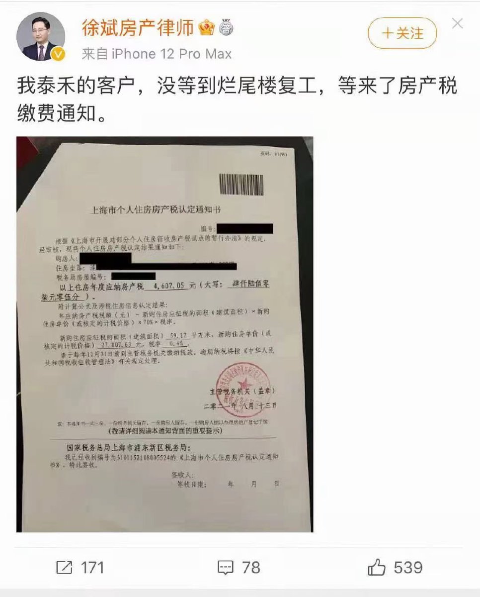 客户买房烂尾,房子没收到,先收到房产税缴费通知