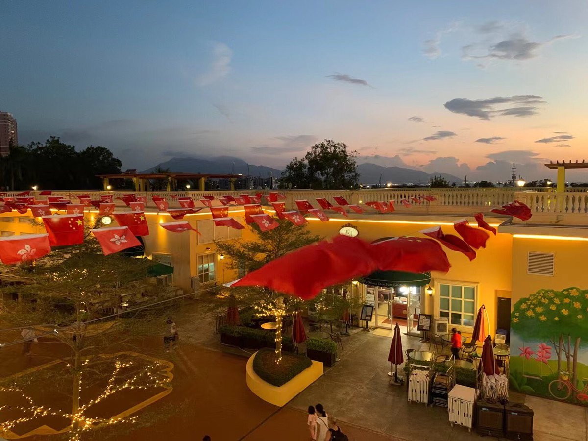 五星红旗和香港特区迎风飘扬于黄金海岸商场