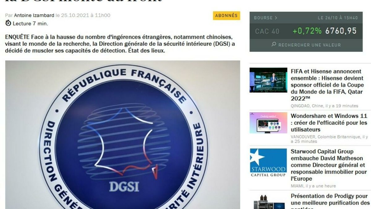 法国国内安全总局(DGSI)加强防范中国科研渗透