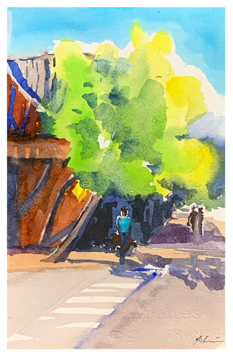一手拎着蛋糕过马路。这树颜色太漂亮。这张气氛很好