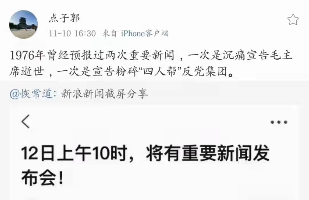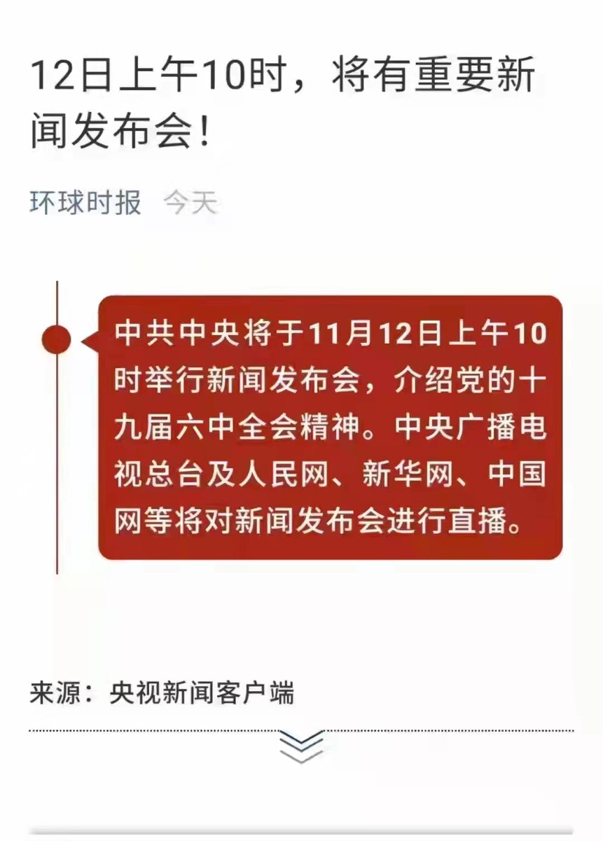 环球时报:11月12日上午10时,将有重要新闻发布会!!!