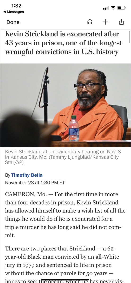 凯文-斯特里克兰在入狱43年后被开释,这是美国历史上时间最长的错误定罪之一。现年62岁的他在1979年被白人陪审团以谋杀三人,判决其终身监禁!43年后宣布是冤假错案!
