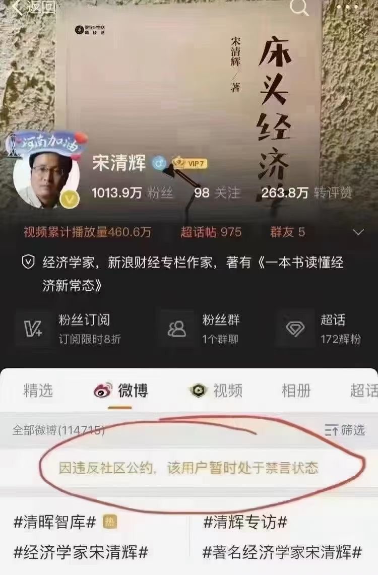 其微博亦被封了!此时是否明白社会主义的铁拳童叟无欺了呢!
