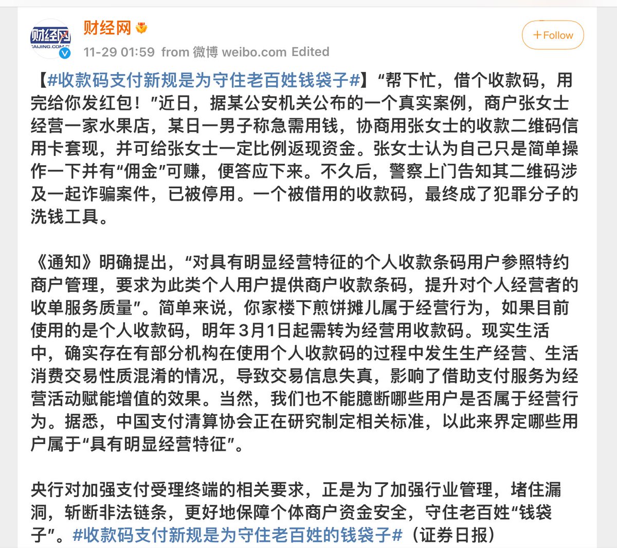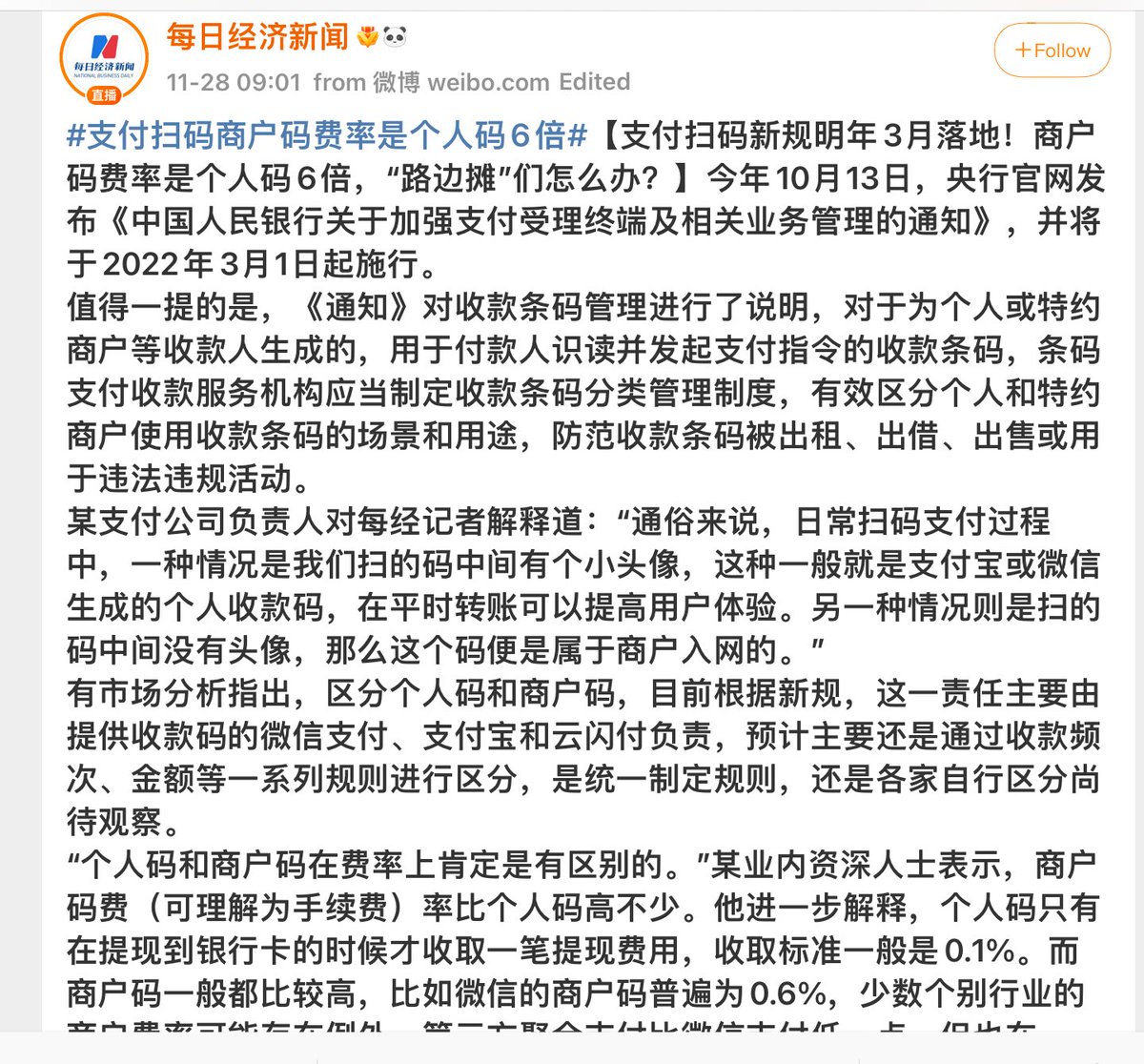为什么突然要把个人收款码管起来呢?连起来看就明白啦,不让用个人码就要申请商户码,费率搞了,税也逃不了了。