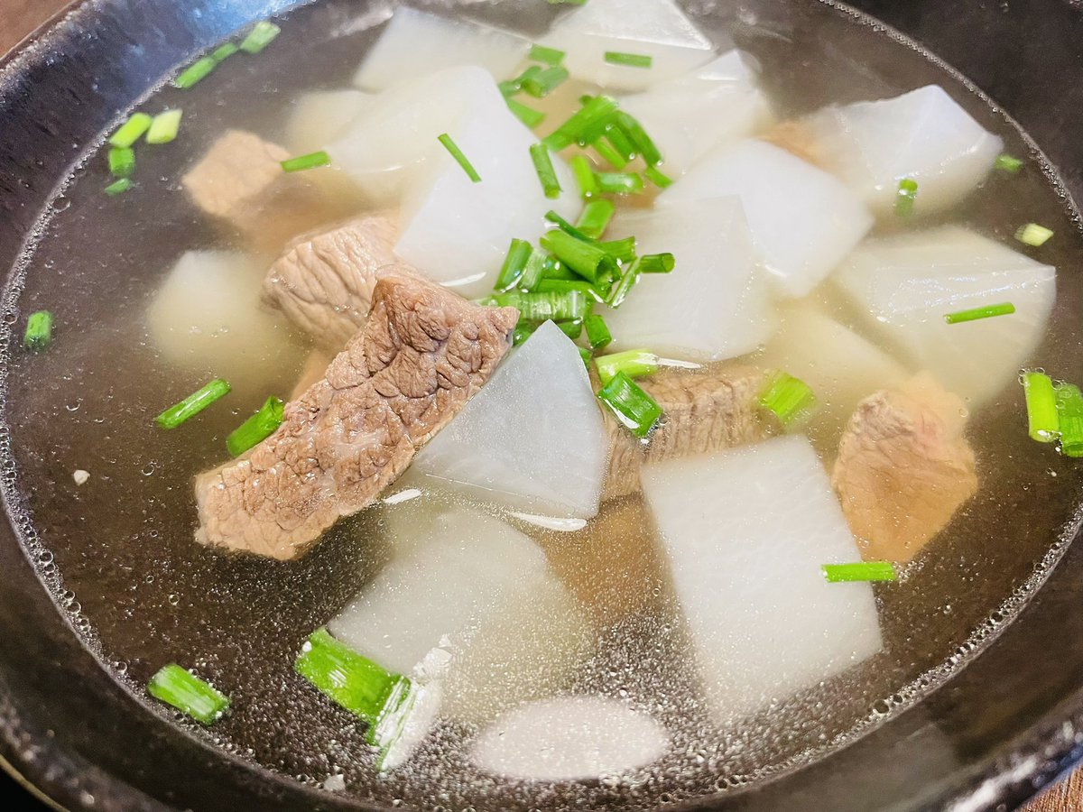 这饼烙的还行吧?萝卜清炖牛肉,最重要的不是开着火炖多久,而是把火关了之后焖多久。其实就是低温烹煮,要有个好的铸铁锅。这份关火之后焖了两个小时。