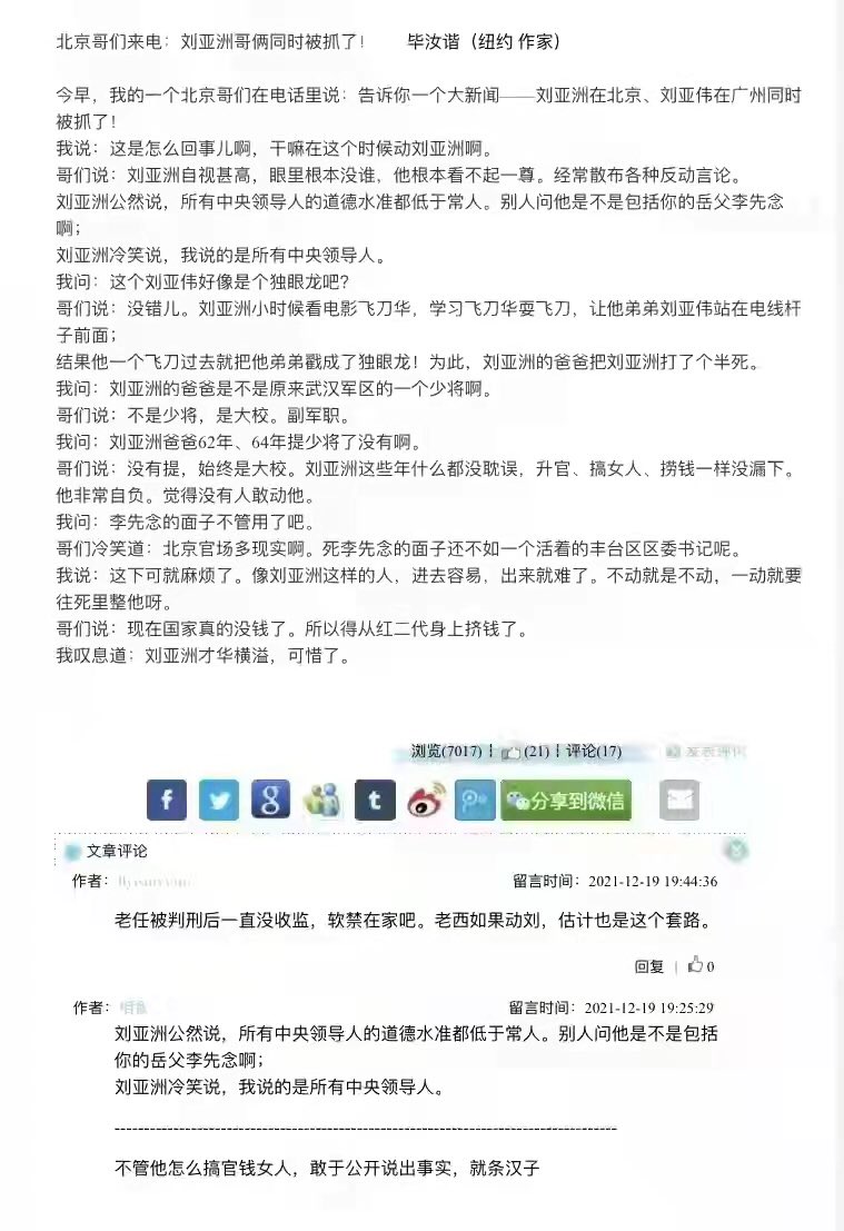 刘亚洲、刘亚伟兄弟被捕,真的吗?