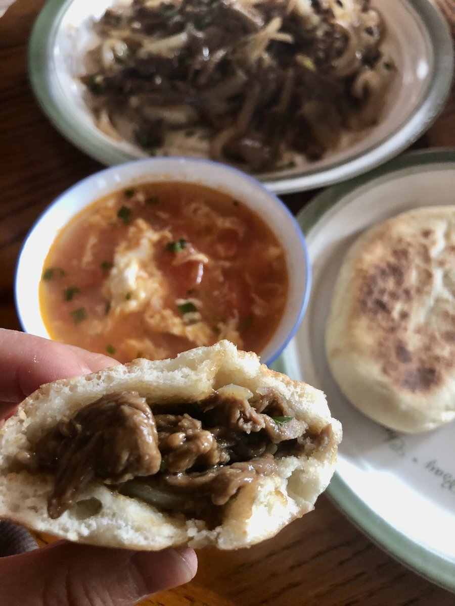 空心儿饼夹葱爆羊肉太棒啦!只要包上浓油酥,保证个个空心儿!早点可以夹个荷包蛋!这可比烙白吉馍还省事儿呢!这要谢谢外西九推友的视频呢!收作业吧