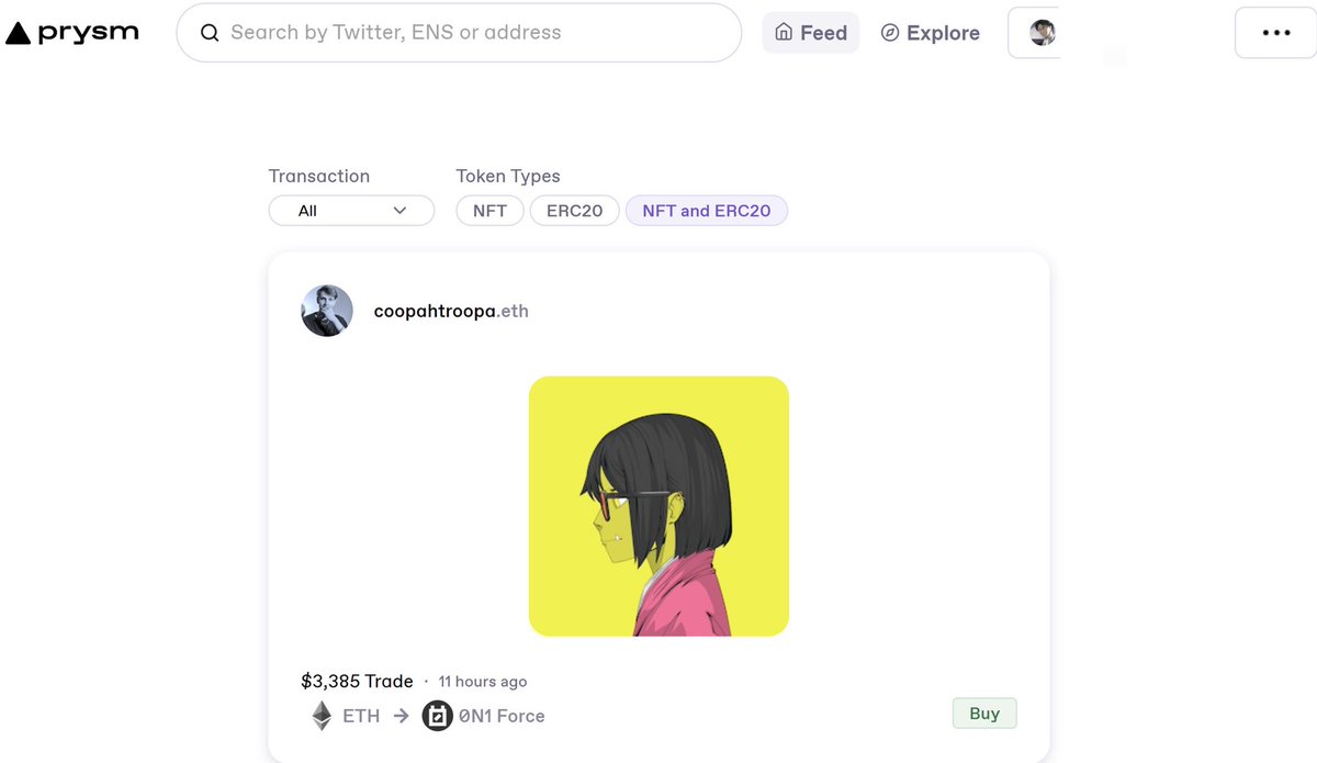 自己链上追踪太麻烦了,推荐个工具:Prysm,搜索ens或者地址和推特id就能实现追踪,Polychain Capital 投了它们。传送门: