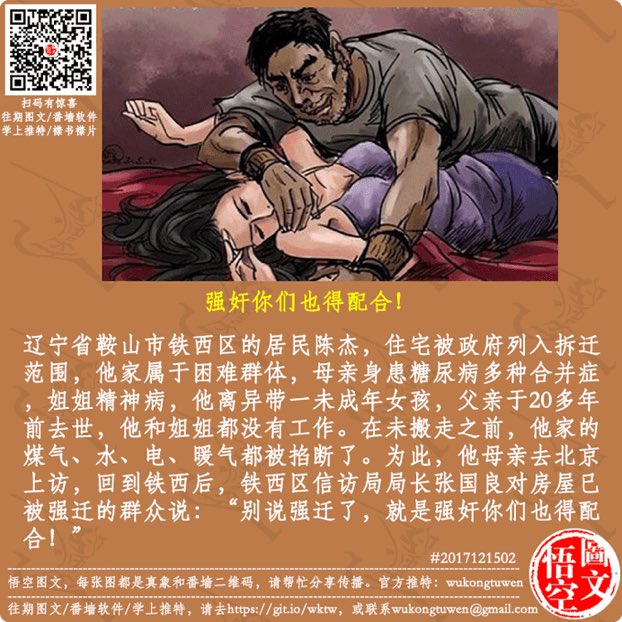 中共国名言录:铁西区信访局长张国民对强迁户说:别说强迁了,就是强奸你们也得配合。