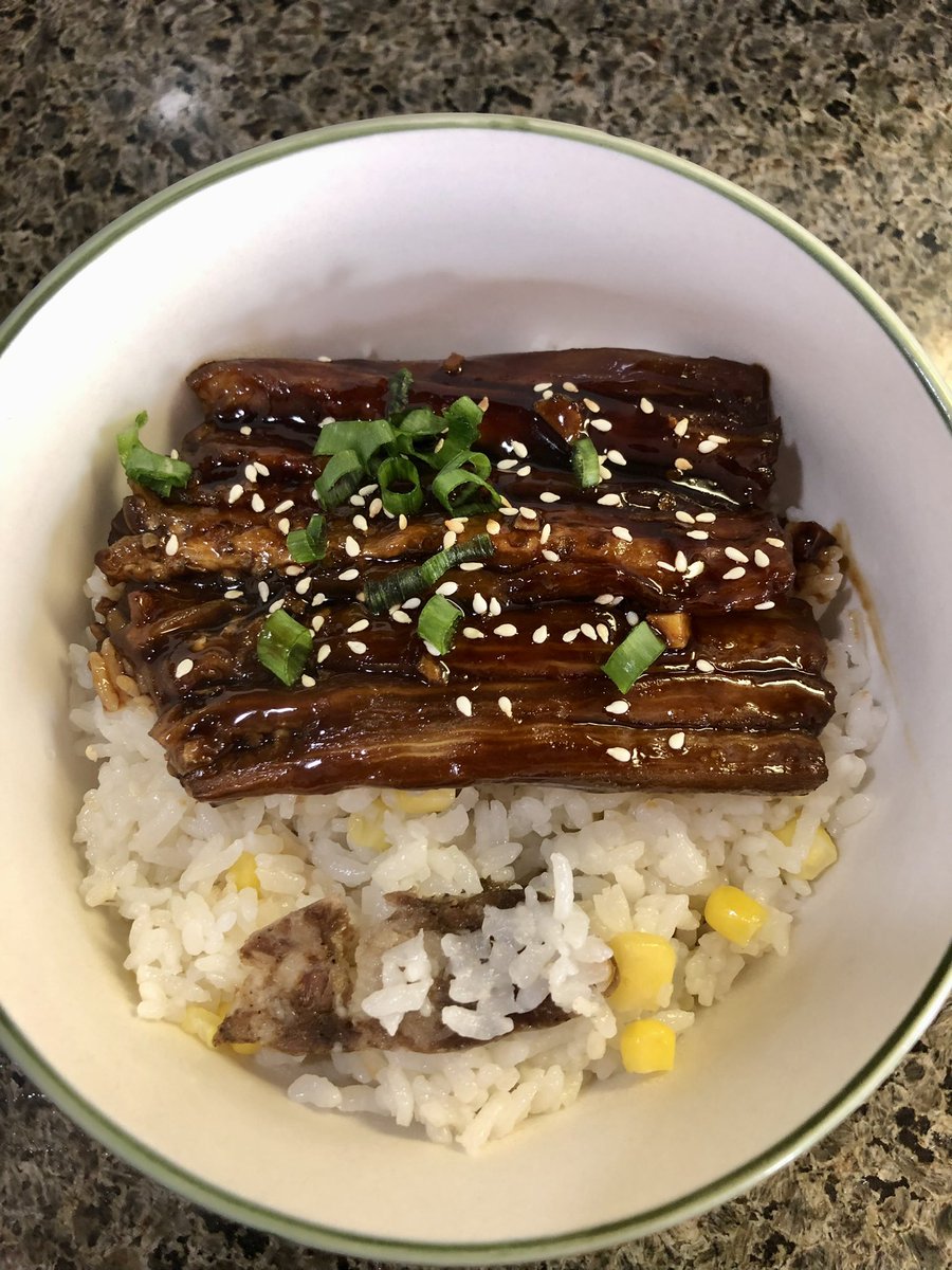 中午就做个蒲烧茄子冒充鳗鱼饭了再烤几个鸡腿儿齐活