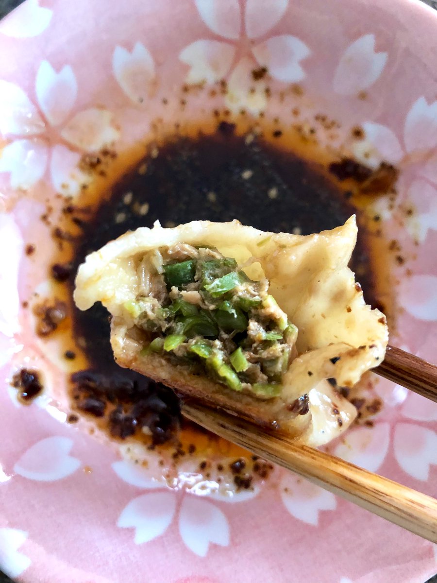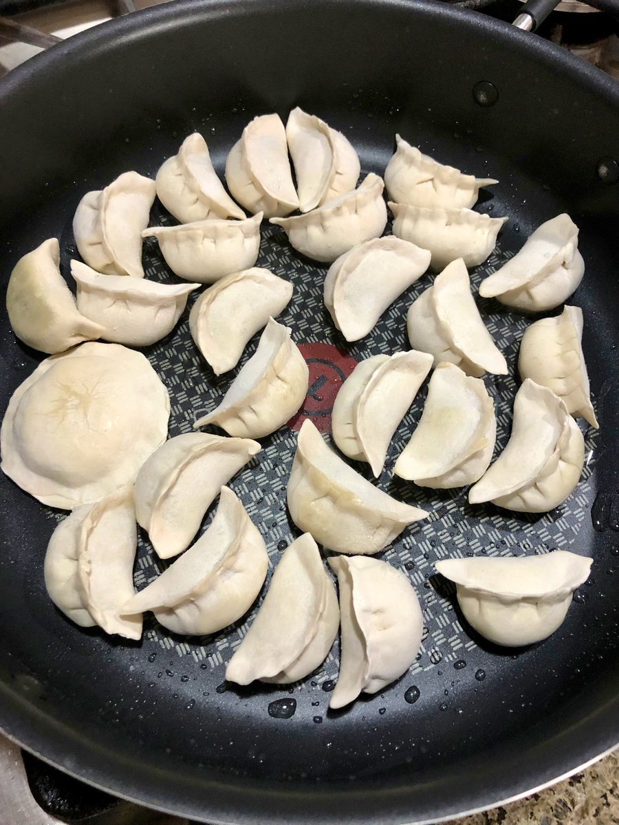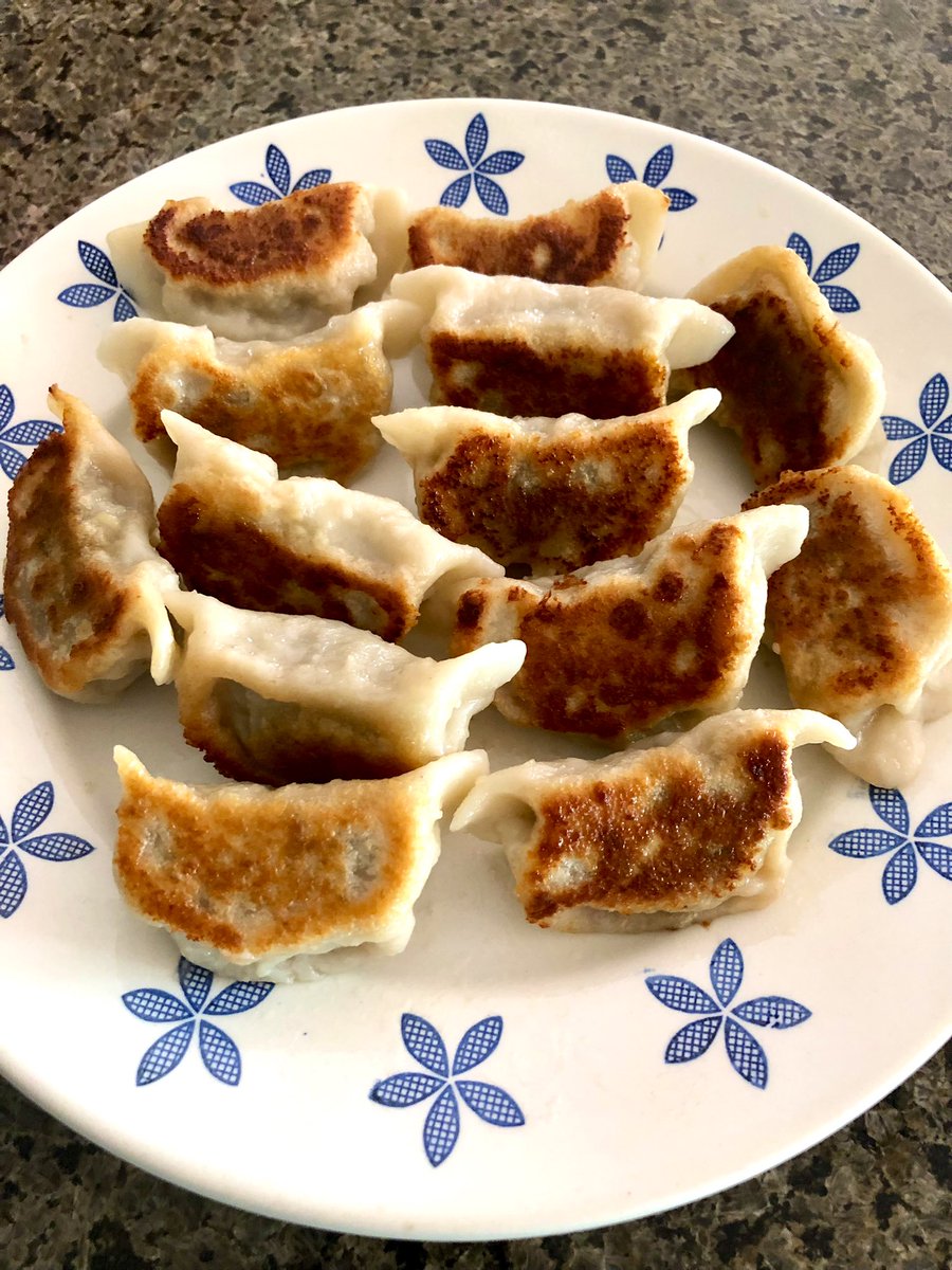 中午就吃锅贴吧,豆角馅儿的,好吃极了就包了这点儿,刚够吃一顿的