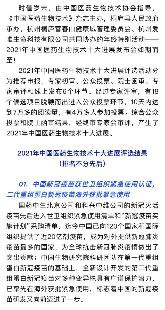 “二代重组蛋白新冠疫苗海外获批紧急使用”,不好意思说哪个“海外”,因为只有阿联酋批准了,说是要作为加强针给那些以前接种国药疫苗的人用,但阿联酋接种国药疫苗的人都是打辉瑞疫苗作为加强针,就是给中国一个面子。
